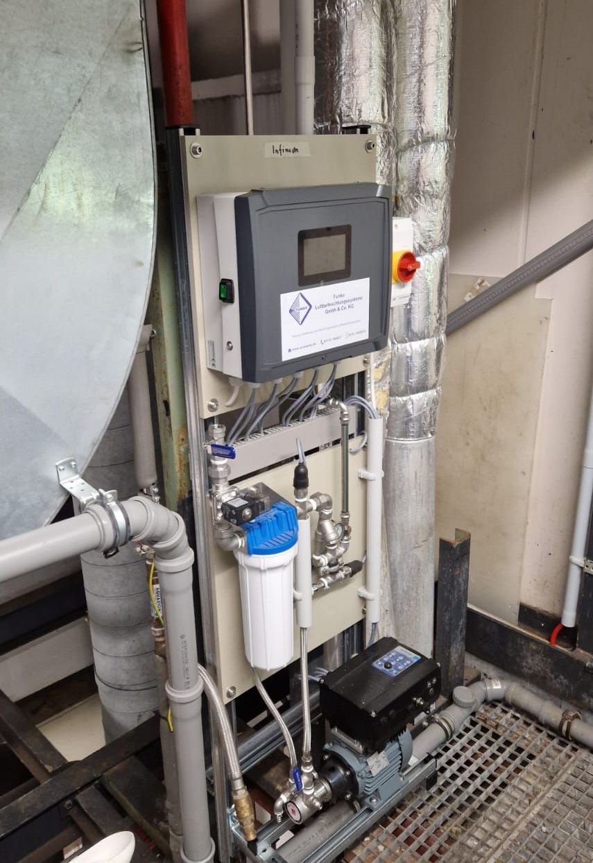 Frischwasserbefeuchtungssystem für adiabate Abluftkühlung